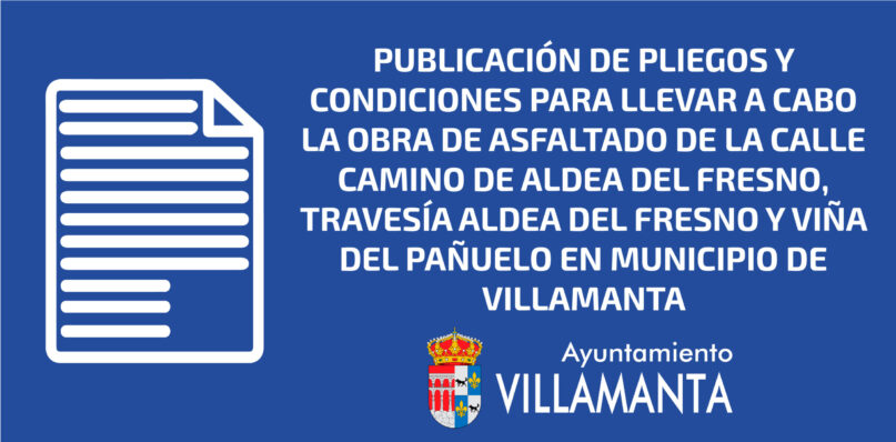 El Ayuntamiento de Villamanta ha publicado los pliegos para llevar a cabo las obras de asfaltado de la Calle Camino Aldea del Fresno, Travesía Aldea del Fresno y Viña de Pañuelo del municipio de Villamanta: Pliego de Cláusulas Administrativas Particulares para la Contratación, por procedimiento abierto simplificado, de las obras de asfaltado en la Calle … Continue reading